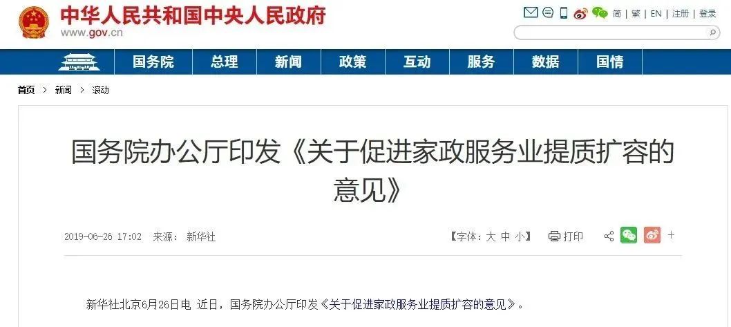 事實(shí)上,家政業(yè)得到了政府前所未有的重視。