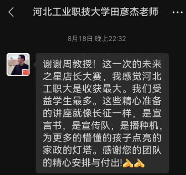 “未來之星家政店長”院校學(xué)生賽自2023年1月初發(fā)出大賽通知到總決賽,時將近8個月,除了豐富的比賽,組委會還安排了內(nèi)容精彩的培訓(xùn),參賽選手和指導(dǎo)教師紛紛也表示收獲滿滿。