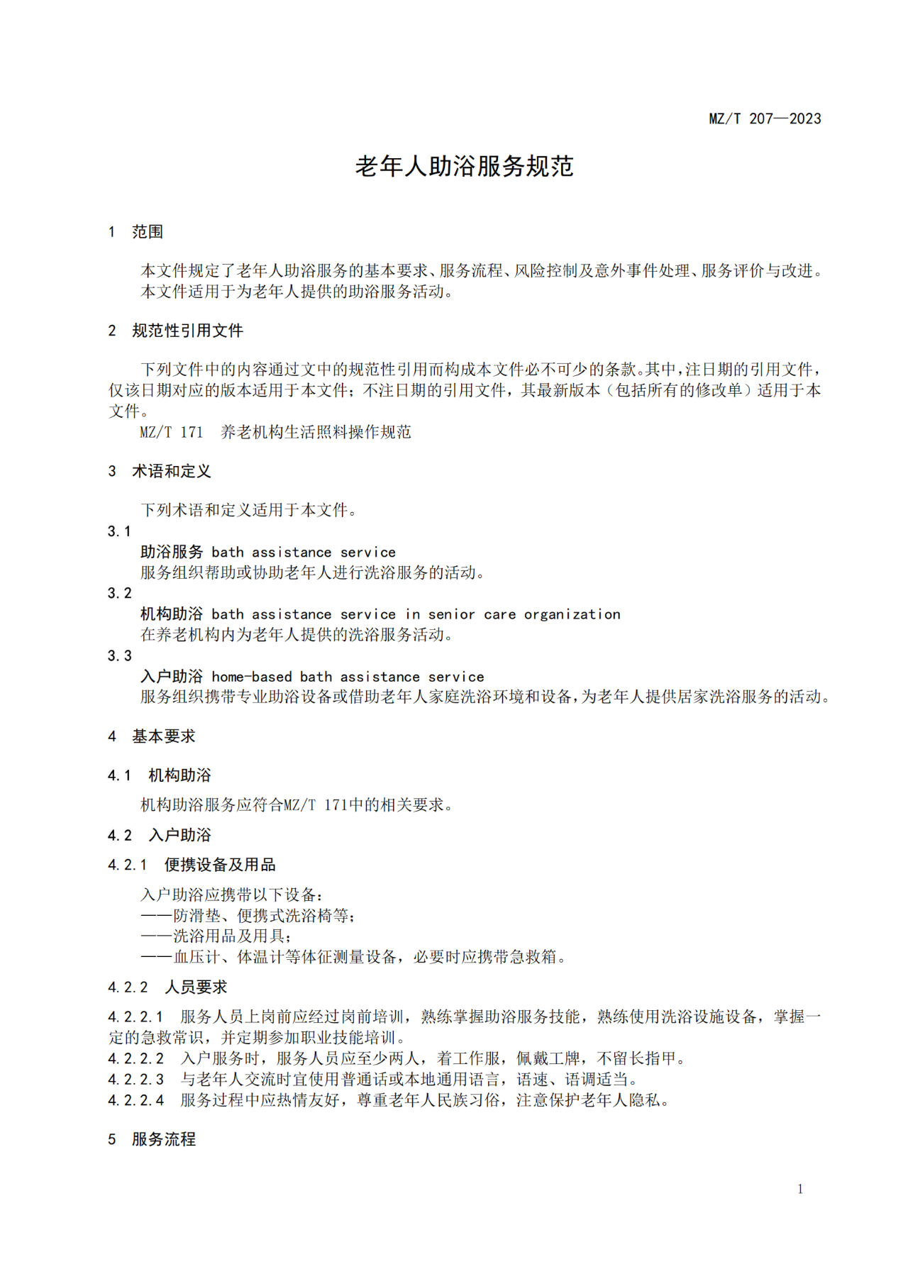 《老年人助浴服務(wù)規(guī)范》等4項(xiàng)推薦性行業(yè)標(biāo)準(zhǔn)已經(jīng)民政部批準(zhǔn),現(xiàn)予以發(fā)布,自2023年12月1日起實(shí)施。規(guī)范中規(guī)定了養(yǎng)老機(jī)構(gòu)康復(fù)服務(wù)的基本要求、服務(wù)流程、風(fēng)險(xiǎn)控制及意外事件處理、服務(wù)評(píng)價(jià)與改進(jìn)等內(nèi)容。詳見(jiàn)標(biāo)準(zhǔn)原文件: